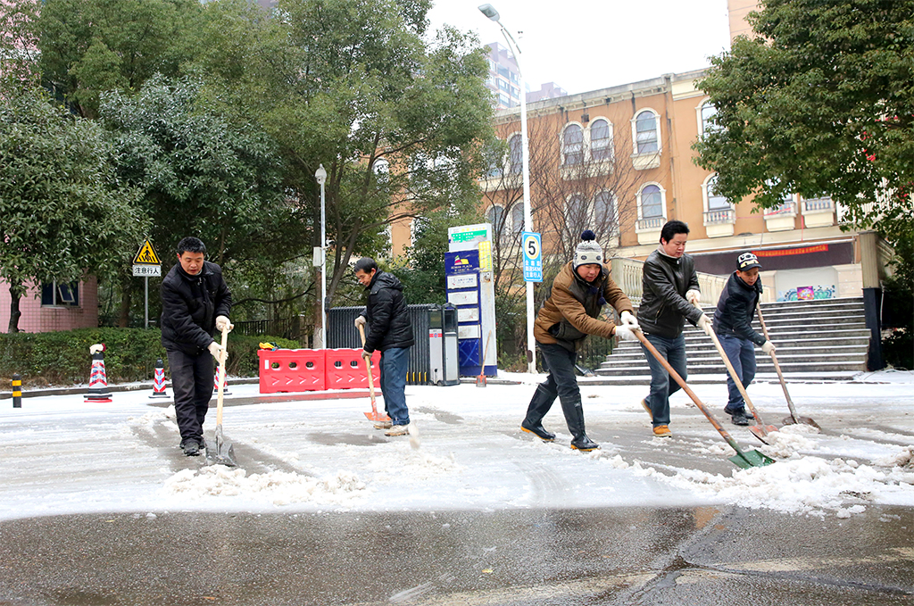 1月26日,大雪覆盖校园,为确保校园的水电和道路交通出行安全, 今年会物业公司从早上7:00就开始,出动全体值班人员,不畏严寒在校园内主要交通要道和办公地点,进行积雪的清扫,然后洒上盐, 防止道路冰冻,确保行人和车辆的出行安全