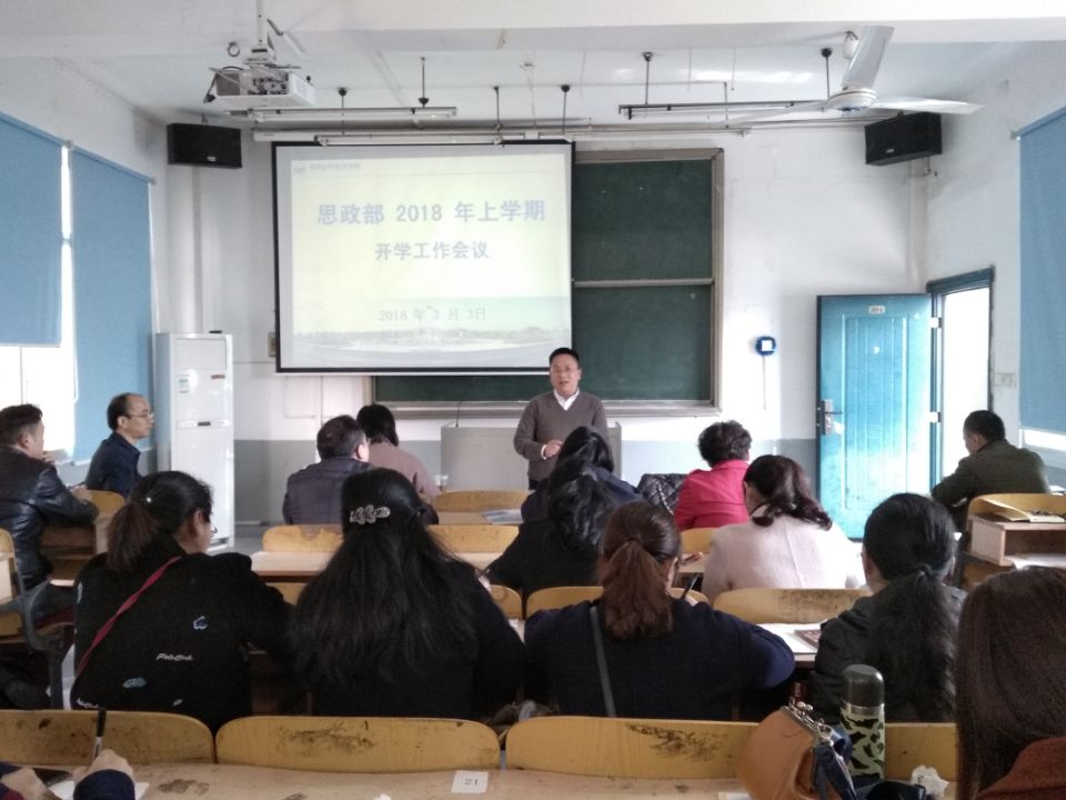 3月3日下午,思政部在1-304教室召开了落实习近平新时代中国特色社会主义思想进教材、进课堂、进师生头脑“三进”工作专题会议,会议由李故新主任主持,思政部全体专、兼职教师参加了会议,鞠晨曦副校长到会指导工作。鞠晨曦副校长谈新时代新思路新要求会上,鞠校长强调了学校对学生工作、思想政治工作、意识形态工作、党建工作的重视,对学生工作和思政工作提出了新思路和新要求。传达“三进”工作会议精神李故新主任组织大家...